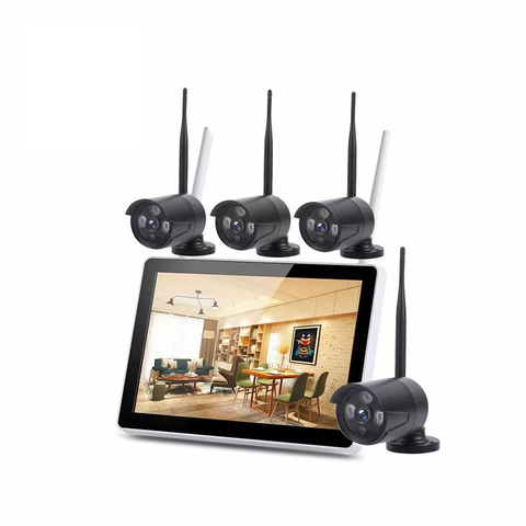 JIND ISEE क्लाउड वाईफाई NVR किट कॉन डिस्प्ले 3MP 12इंच LCD H265 4CH P2P वायरलेस सीसीटीवी सुरक्षा कैमरा आईपी वाईफाई NVR किट